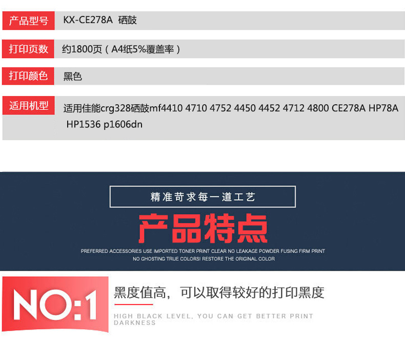 凱欣標準版 KX-CE278A粉盒 適用HP78A硒鼓CE278A P1566 p1606dn m1536dnf 全國統(tǒng)一價:130元